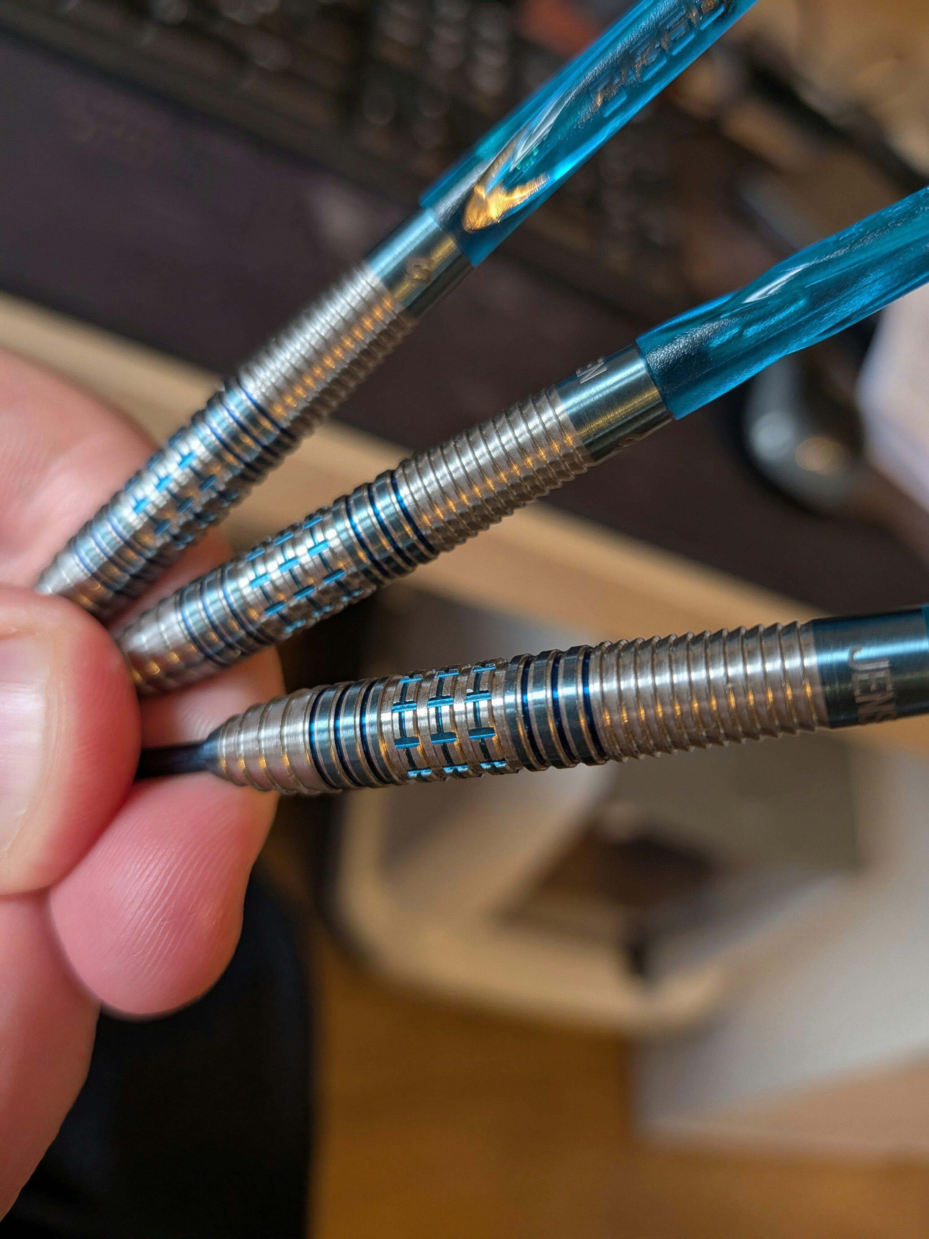My Jensen's arrived today in the UK. International shipping was clear and I'm very happy. The darts themselves are quite grippy, perhaps 4/5 with different grips along the barrel to suit different styles. The shape is nice, and fly well in the air.